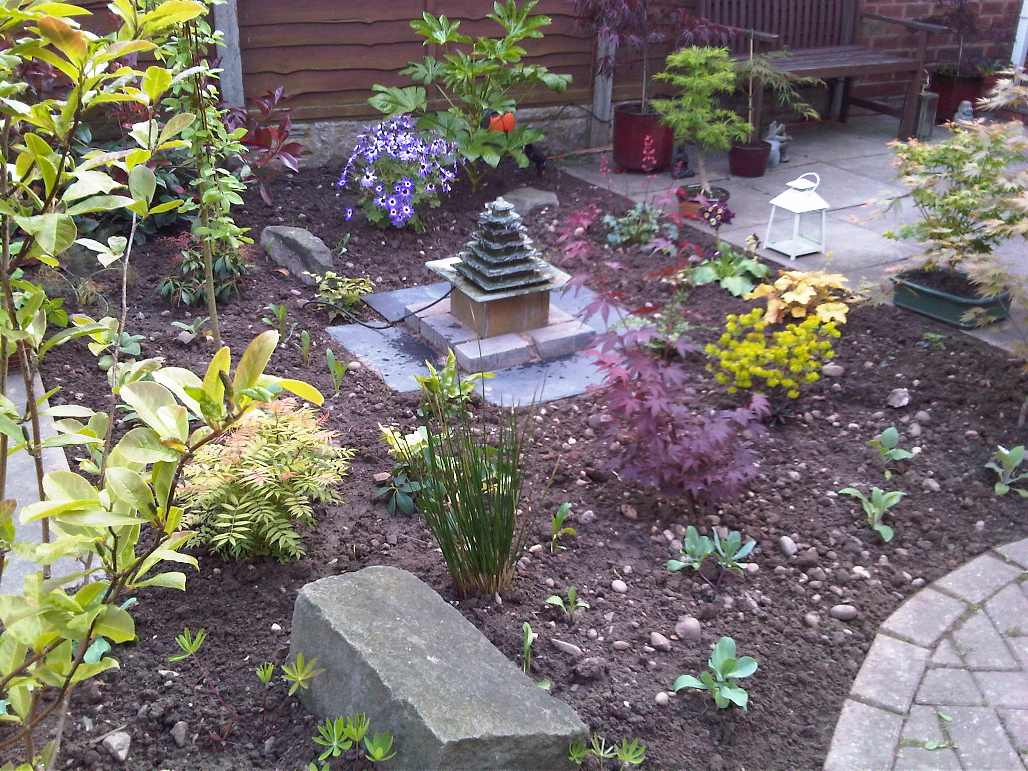 In this space the client wanted a bed created to help screen a green house. After consulting with the client, a style and design were agreed on. The turf was stripped and the soiled prepared for the planting. A small water feature was installed along with up-lighting to help the space become usable in the summer evenings. The planting used incorporated the clients favourite plants and some suggested by ourselves. After the bed was completed the client chose to take a maintenance contract with ourselves.